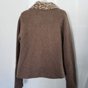Chiaramente Italian Wool Blend Tan and Animal Print Wrap style Cardigan sz M