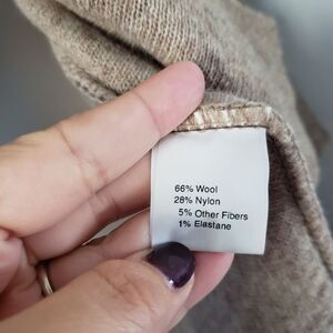 Beautiful cozy wool blend tan sweater with animal print neckline great preowned condition