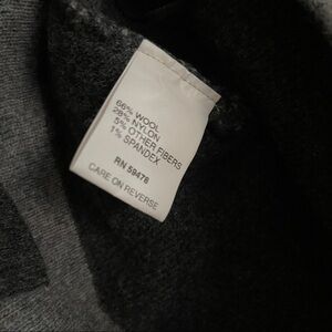 Chiaramente wool blend open cardigan, size women’s small. Fold over cowl neck with button detail. Grey and black. Excellent used condition with no stains of hole. Minimal