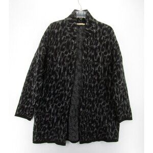 Chiaramente Sweater Medium Wool Open Tunic Cardigan Animal Print