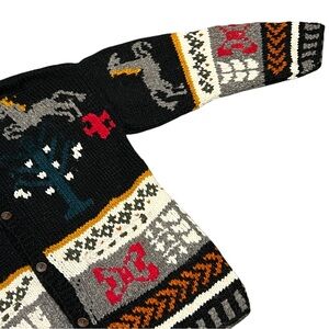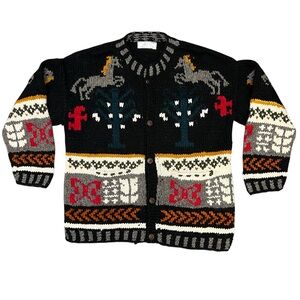 Chibcha Wool Artesian Cozy Heavy Knit Chunky Vintage Cardigan Horse Sweater
