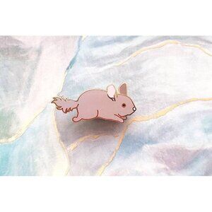 This Chibi Chinchilla enamel pin is so cute. I also like to call it a pinchilla. This pin is a super adorable 1" pin featuring a gray and pink chinchilla on the move. This small pin features the highly intelligent and kawaii rodent native to South America. They love to run, jump, and dash about. Wild chinchillas are on the decline and domesticated chinchillas are sometimes raised as exotic pets. The pin is 1" in size is set in gold-plated metal. It has a single post on the back. This is a Grade A Pin, the highest grade awarded to pins, meaning that it doesn't have any noticeable flaws.