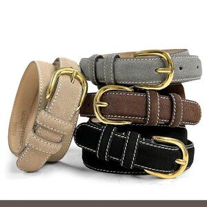 Features: Made from high-quality 100% genuine suede leather, this belt has a classic design with a stylish gold-tone buckle. Perfectly versatile for dressing up jeans or adding polish to workwear.