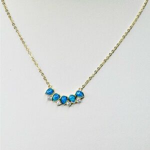 Chic 18K Gold Necklace with Blue Opal Stones and Crystal Accents