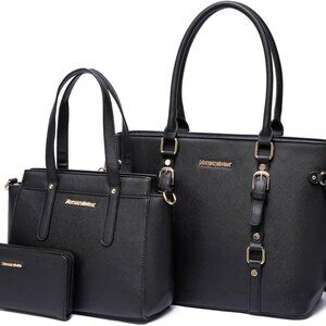 Chic 3PCS Black Handbag Collection: Tote, Medium Purse & Wallet — Perfect Gift for any occasion.