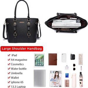 Features: This set combines timeless style and practicality with high-quality PU leather, smooth stitching, and a durable zipper. The tote is roomy for daily essentials, while the medium purse and wallet keep you organized. The adjustable, removable shoulder strap adds versatility—wear as a tote, shoulder bag, or crossbody.