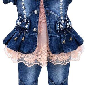 Chic 3-Piece Denim Clothing Set for Girls — Perfect for casual outings or special little occasions.