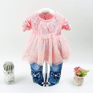 Features: Includes a cute denim jacket, comfy T-shirt, and versatile jeans — all made from easy-care denim. The set is classic, adorable, and sure to earn compliments, making it a great gift idea. The dark blue denim might vary slightly in shade, so wash separately the first time.