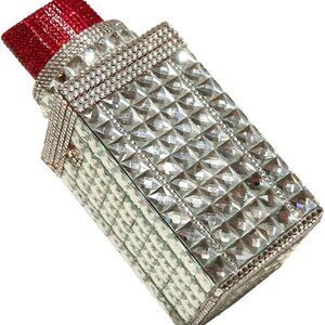 Features: Fun lipstick shape clutch with sparkling rhinestones embellishing the surface for a cute, glamorous vibe. Compact but spacious enough for keys, tissues, lipstick, change, and small essentials—no space for a phone. Easy-to-use lock catch closure keeps your items secure. Comes with a detachable chain, so you can wear it as a clutch, shoulder bag, or crossbody, depending on your mood.