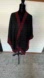 Chic reversible Alpaca red poncho, featuring a bold black pattern trim. Perfect for layering and adding a fashionable touch to any outfit.