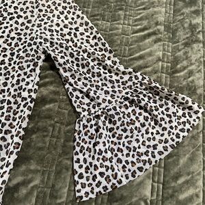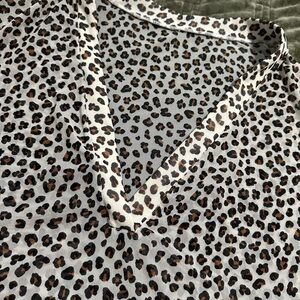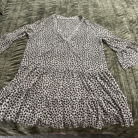 Sheer animal print dress with ruffle accents. Ideal for versatile styling.