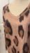 Trendy animal print top with a V-neck and long sleeves. Features a striking pattern in brown and black.