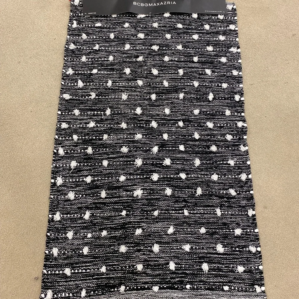 Super cute! Lightweight and durable area rug. Place in any room of your home for a chic look! Area rug measures 27 in x 45 in and can easily fold away when not in use. Brand new with tags! Smoke free and pet free!
