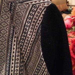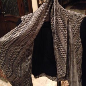 Patterned, asymmetrical, open jacket; soft cotton with wool sleeves and pockets; worn maybe 2x- great condition!