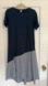 Discover elegance with this chic asymmetrical dress in navy and white. Perfect for any occasion.
