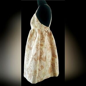 Absolutely Gorgeous Babydoll Mini Floral Embroidered Gold Beige Women's Size Large New Without Tags Brunch Wedding Vacation Lightweight Packable Sweetheart Neckline Formal Garden Party Going Out Date Night