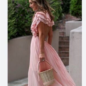Turn heads with this chic backless pink dress, featuring elegant ruffles for a touch of sophistication. Perfect for any special occasion.