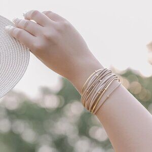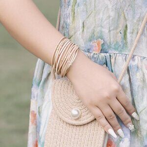 Features: Lightweight and super versatile, this trendy bracelet features nude and gold strands with a subtle metallic sheen. The beaded leather strands add texture and a touch of elegance, making it perfect for stacking or wearing solo. The secure magnetic clasp makes it easy to put on and take off — great for everyday wear or dressing up a casual look.