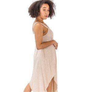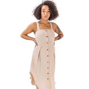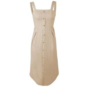 Chic Beige Button-Down Split Square Neck Sleeveless Midi Dress