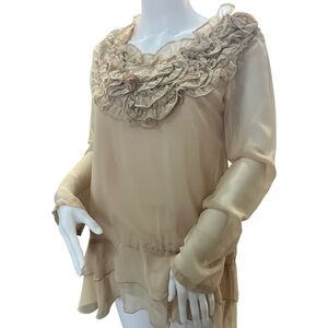 Chic Beige Ruffle Blouse