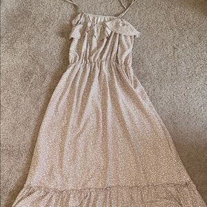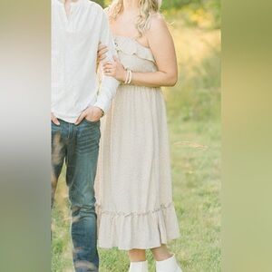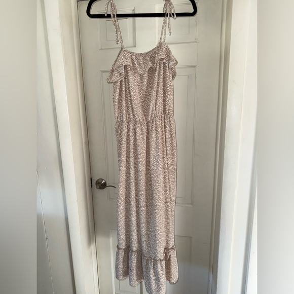 Step out in style with this chic beige ruffle dress. Perfect for any occasion, it offers a flattering fit and elegant design.