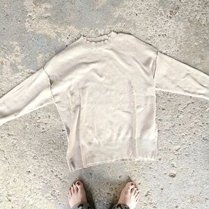 Elevate your wardrobe with this chic beige crew neck sweater. Perfect for layering or wearing alone, it combines comfort with style. new with out tags