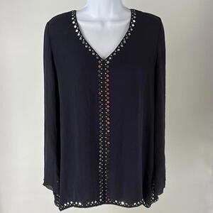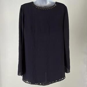 Elevate your wardrobe with this stylish Black Blouse featuring exquisite beaded detailing along the neckline and hem. Perfect for both casual outings and dressy occasions, this blouse offers versatility and flair. The V-neck design flatters the figure, while the soft fabric ensures comfort all day long. Key features include: - Elegant beaded embellishments for a touch of sophistication - Flattering V-neck design - Long sleeves for added coverage - Lightweight and breathable fabric for comfort - Perfect for layering or wearing on its own.