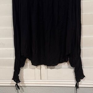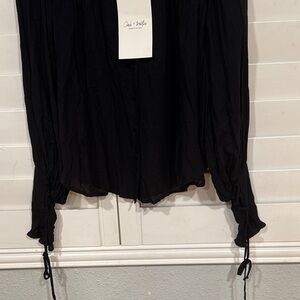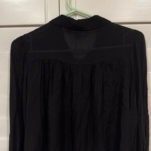 Discover timeless elegance with this chic black blouse. Perfect for any occasion, its sophisticated design and elegant sleeves make it a wardrobe essential.