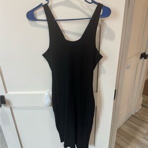 This chic black mini dress features a stylish button-front design, perfect for any occasion. Its sleek silhouette offers a flattering fit.