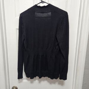 Elegant black cardigan. Perfect for layering. Stylish and versatile.