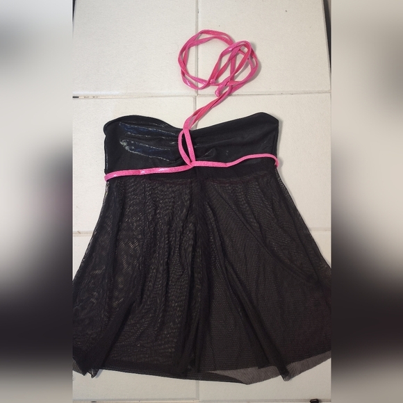 Chic Black Chemise with Pink Trim #547
