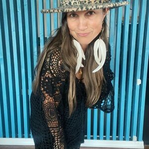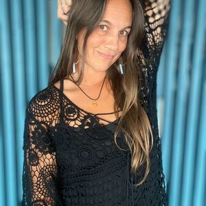 Stylish black crochet tunic. Ideal for layering over swimwear or casual outfits. The manufacture states this is a One Size Fits Most. I would say it’s more like a large. It’s a fun piece! The listing is for the crochet dress only, not the layering black dress underneath.