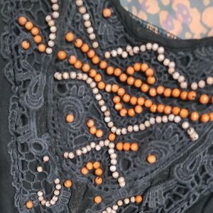 Elevate your style with this chic black tank top featuring intricate embellishments. Perfect for a modern and sophisticated look.