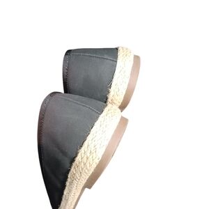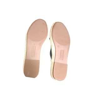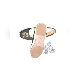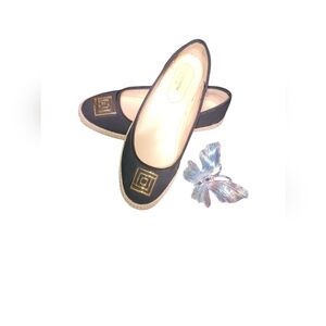 Step out in style with these chic black espadrille flats. Perfect for any occasion, these shoes offer comfort and elegance. The sleek design is complemented by a stylish emblem, making them a must-have addition to your wardrobe.