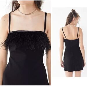 Chic Black Feather Trim Mini Dress Urban Outfitters Clarissa Size 12