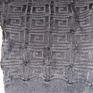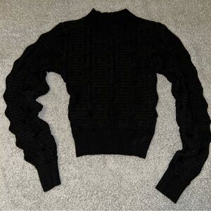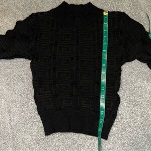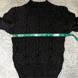 Elevate your wardrobe with this chic black turtleneck sweater, featuring a striking geometric pattern. Perfect for any occasion, this sweater combines style and comfort effortlessly.