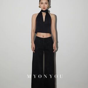 Elegant black halter top with a stylish neckline. Perfect for a night out.