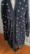 .This exquisite Sweater Jacket is amazing in excellent condition especially considering age from a fashion Diva closet Elegant black jacket featuring striking gold accents. Ideal for stylish outings.vintage it says what looks like petite on lable it is not i am tall .I would keep for myself. However, south Florida is not the place I rarely get to. NY . I love this