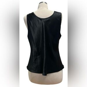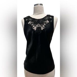 This chic black camisole features an intricate lace neckline, adding a touch of elegance to your wardrobe. Perfect for both casual and formal occasions.( pit2pit 24’ Length 25 1/2 ‘