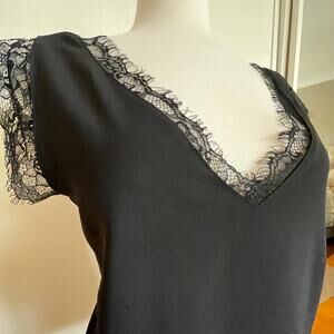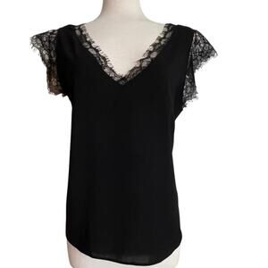 Chic Black Lace-Trim V-Neck Blouse – Size M