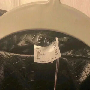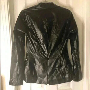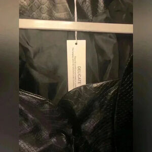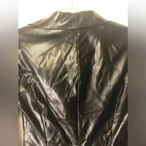 Chic Black Leather Jacket. Snake Embossed Faux Leather Embellished Blazer