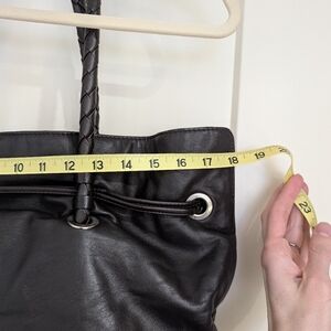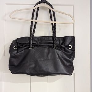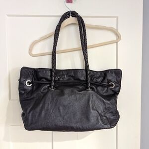 Elegant black leather tote with braided handles. Perfect for everyday use.