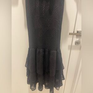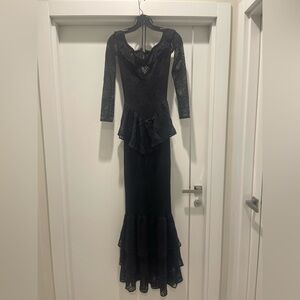 Embrace sophistication with this chic black lace dress. Designed with long sleeves and elegant lace details, it's perfect for any formal event.