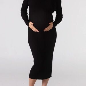 Experience comfort and style with this chic black maternity midi dress. Perfect for any occasion, it complements a variety of looks.