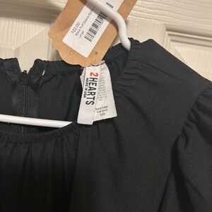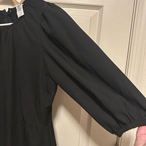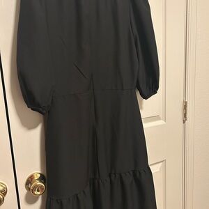 Elegant black midi dress with puff sleeves. Perfect for any occasion. Flattering silhouette.