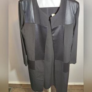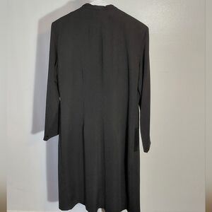 This chic black midi is coat and dress two piece features long sleeves and a sophisticated design. Perfect for any occasion. pre-own