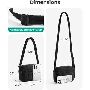 Features: Trendy small crossbody with a rectangular puffy silhouette that’s super lightweight and water-resistant. It has a sleek design with a zipper closure, adjustable shoulder strap, and multiple compartments—two main sections with three interior pockets. The RFID-blocking front wallet pocket adds a clever security touch, perfect for keeping your cards safe while on the go.