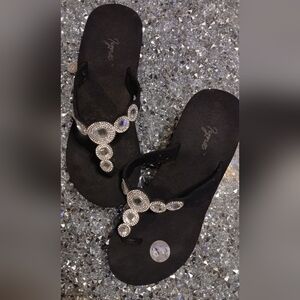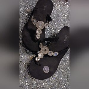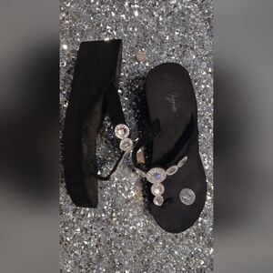 Elevate your style with these chic black rhinestone sandals. Perfect for adding a touch of sparkle to any outfit.