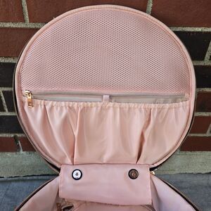 Upgrade your travel style with this chic black round bag. Its sleek design and elegant finish make it a perfect travel companion.