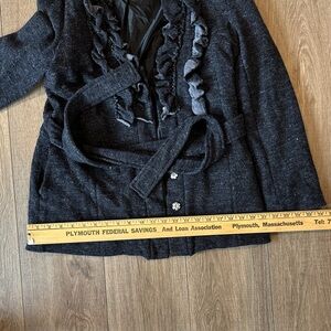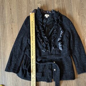 Elevate your style with this chic black ruffled jacket, perfect for any occasion. This listing cannot be bundled with anything else due to weight. If bundled, order will be cancelled. Thank you